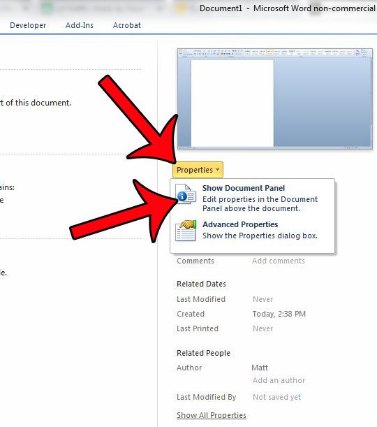 Sekarang setelah Anda mengetahui cara menampilkan panel properti dokumen di Word 2010, Anda dapat dengan mudah melihat informasi yang terdapat di lokasi tersebut kapan pun Anda membutuhkannya.