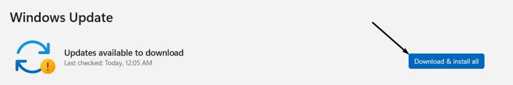 4.Nếu bạn thấy bất kỳ cập nhật nào trên màn hình, hãy nhấp vàoTải xuống và cài đặt tất cảnút để cài đặt chúng.