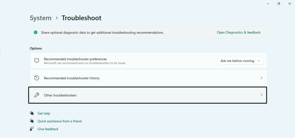2.trongKhắc phục sự cốcửa sổ, bấm vàoTrình khắc phục sự cố khácđể xem tất cả các trình khắc phục sự cố gốc.