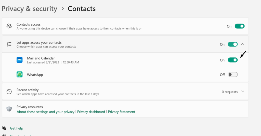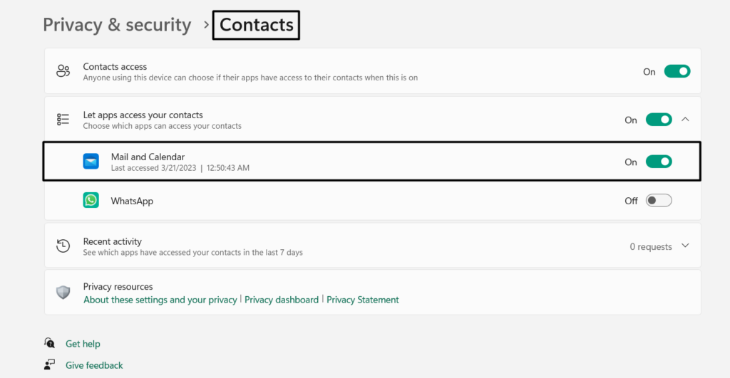 Một lý do khác khiến Lịch không hoạt động trong Windows 11 có thể là do cài đặt quyền riêng tư bị định cấu hình sai. Vì vậy, bạn cần đảm bảo rằng cài đặt quyền riêng tư của ứng dụng Thư và Lịch của bạn được định cấu hình đúng cách. Bạn có thể đảm bảo điều tương tự bằng cách làm theo các bước dưới đây: