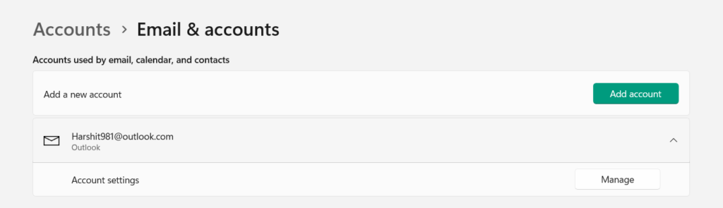 2.TrênTài khoảnmàn hình, nhấp vàoEmail & tài khoảntùy chọn để xem tài khoản đã đăng nhập của bạn.
