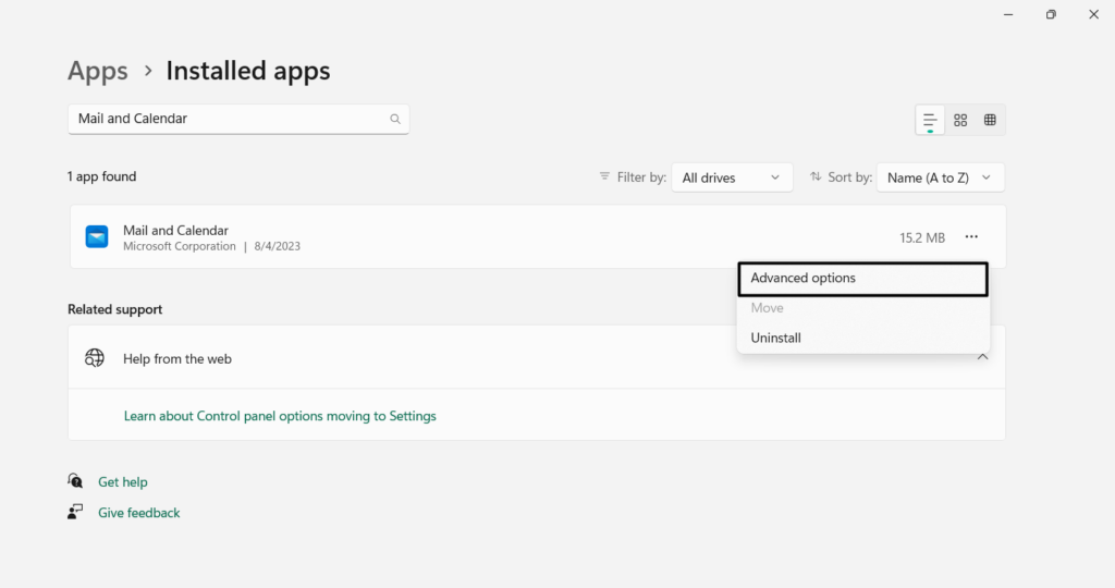 Một cách giải quyết khả thi khác để dễ dàng giải quyết sự cố với ứng dụng Thư và Lịch làsửa chữa nó. Làm như vậy sẽ xóa tất cả dữ liệu khỏi hệ thống Windows của bạn và hy vọng cũng có thể khắc phục được sự cố. Vì vậy, hãy làm theo lời nhắc dưới đây để sửa chữa chương trình Thư và Lịch: