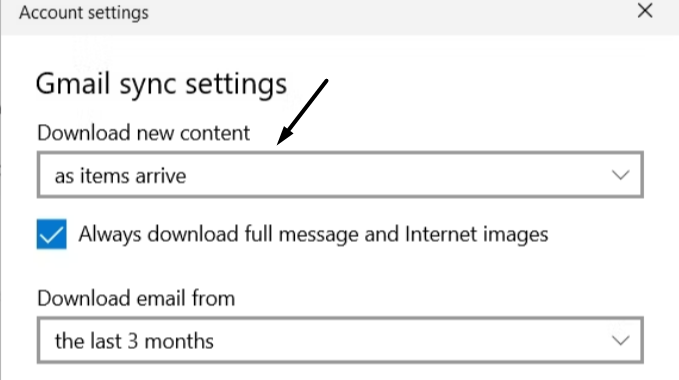 5.Trong lời nhắc mới, hãy chọnkhi các mặt hàng đếntùy chọn từTải xuống nội dung mớithả xuống.