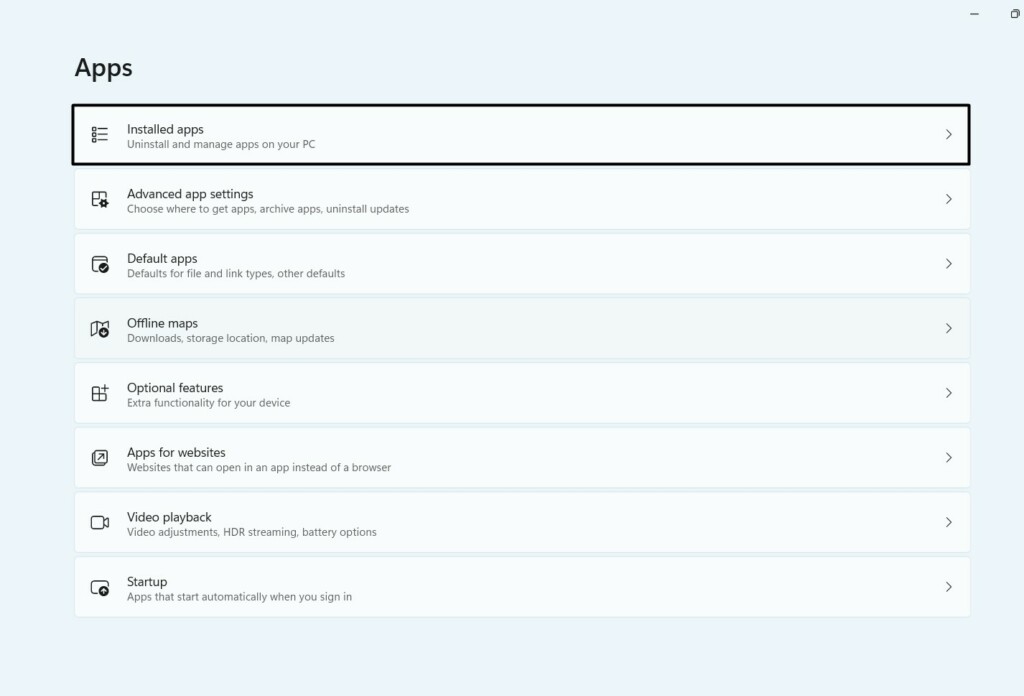 1.Đi đếnỨng dụngphần PC của bạnỨng dụng cài đặtvà chọnỨng dụng đã cài đặtlựa chọn.