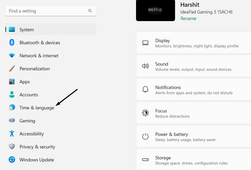 1.Khởi độngỨng dụng cài đặttrên hệ thống của bạn và chọnThời gian & ngôn ngữtừ thanh bên trái của nó.