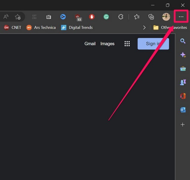 1.Ngoài ra, bạn có thểkhởi chạy ứng dụng Microsoft Edgetrên thiết bị Windows 11 của bạn vànhấp vào nút ba chấmở trên cùng bên phải.