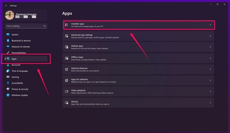 2.đi tớiỨng dụngtừ thanh điều hướng bên trái và nhấp vàoỨng dụng đã cài đặtlựa chọn.